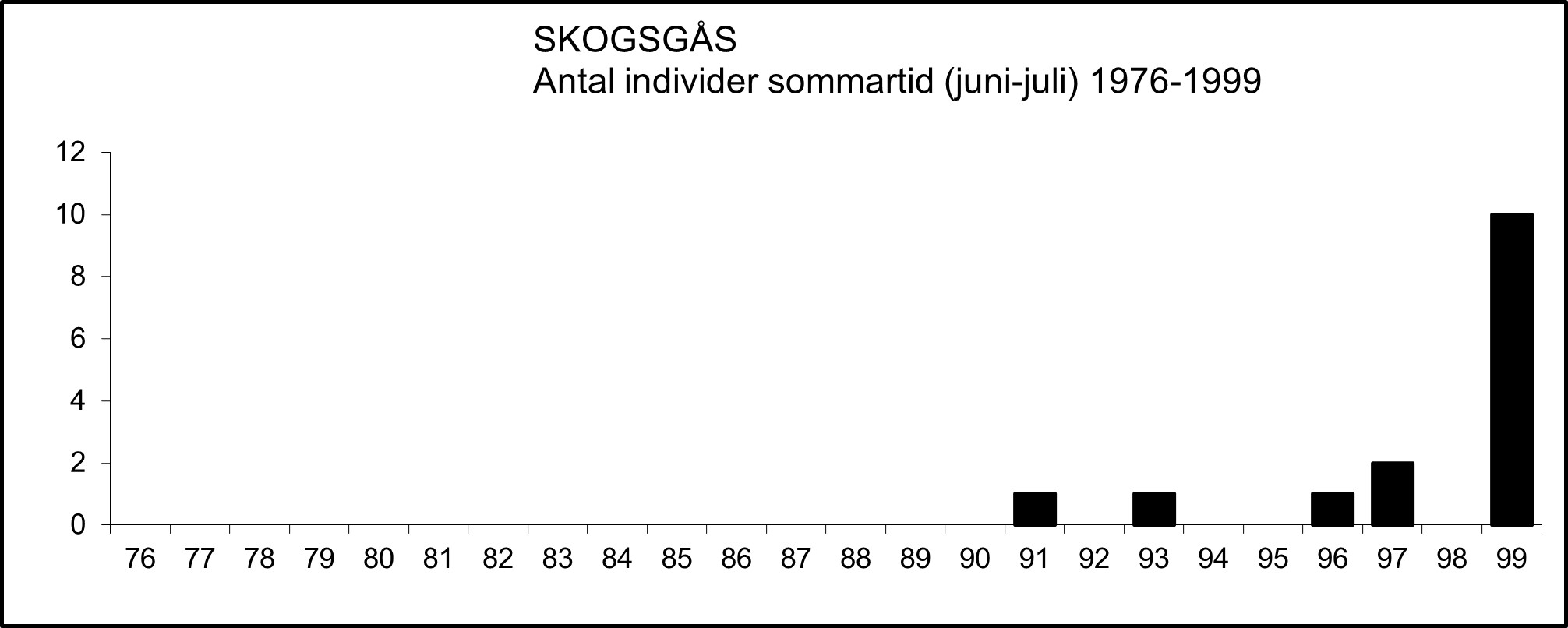 Före 1976 rastade skogsgäss i obetydlig omfattning i Västmanland. Enligt Per Olsson (1974) rastade dock 50-100 skogsgäss årligen på vårarna vid Nötmyran i Västerfärnebo. Ett annat undantag i sammanhanget utgjorde upp till cirka 185 ex., som ett par höstveckor 1973 rastade vid Asköviken i Västerås-Barkarö (Lars Lindell 1974d).