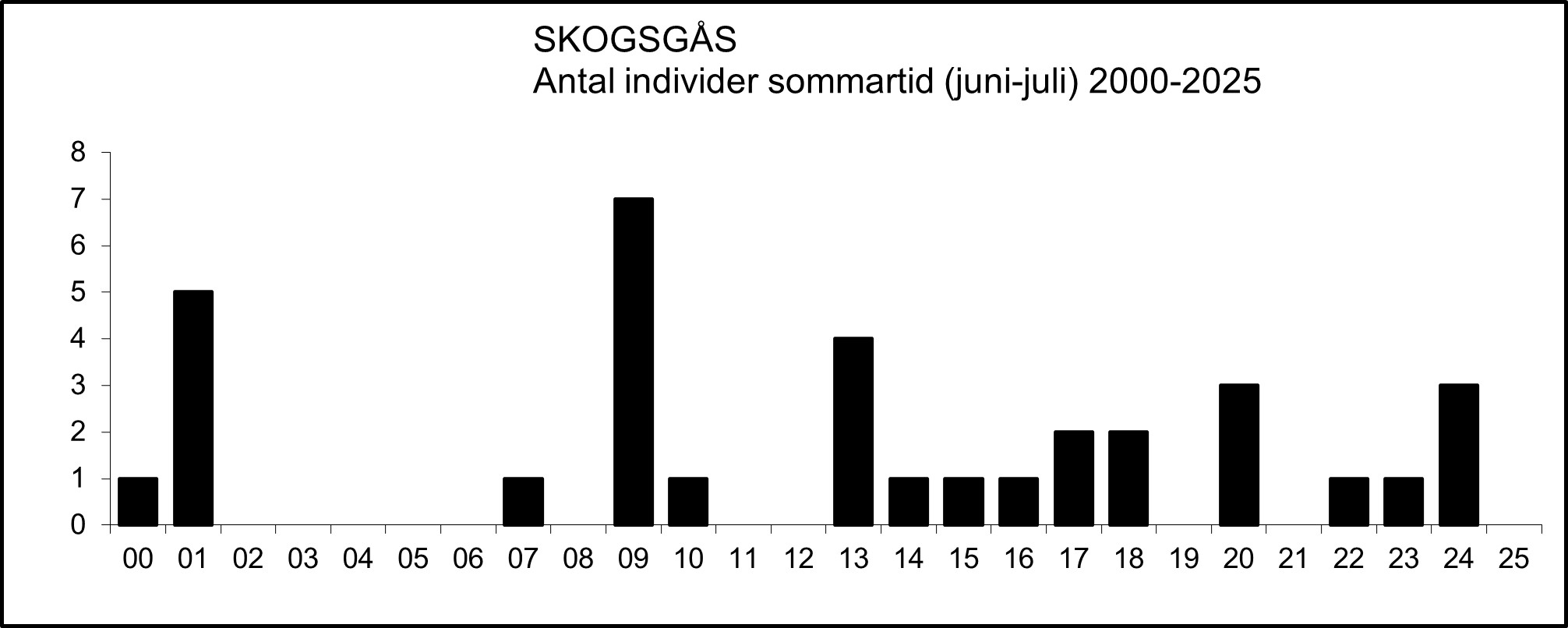 Sommarfynd (juni-juli) görs sällan, men med en något ökad frekvens på senare år.