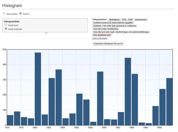 1975 1 ex. Väringen i Ervalla/Näsby 16.7 (Torsten Lindstedt, opubl.).