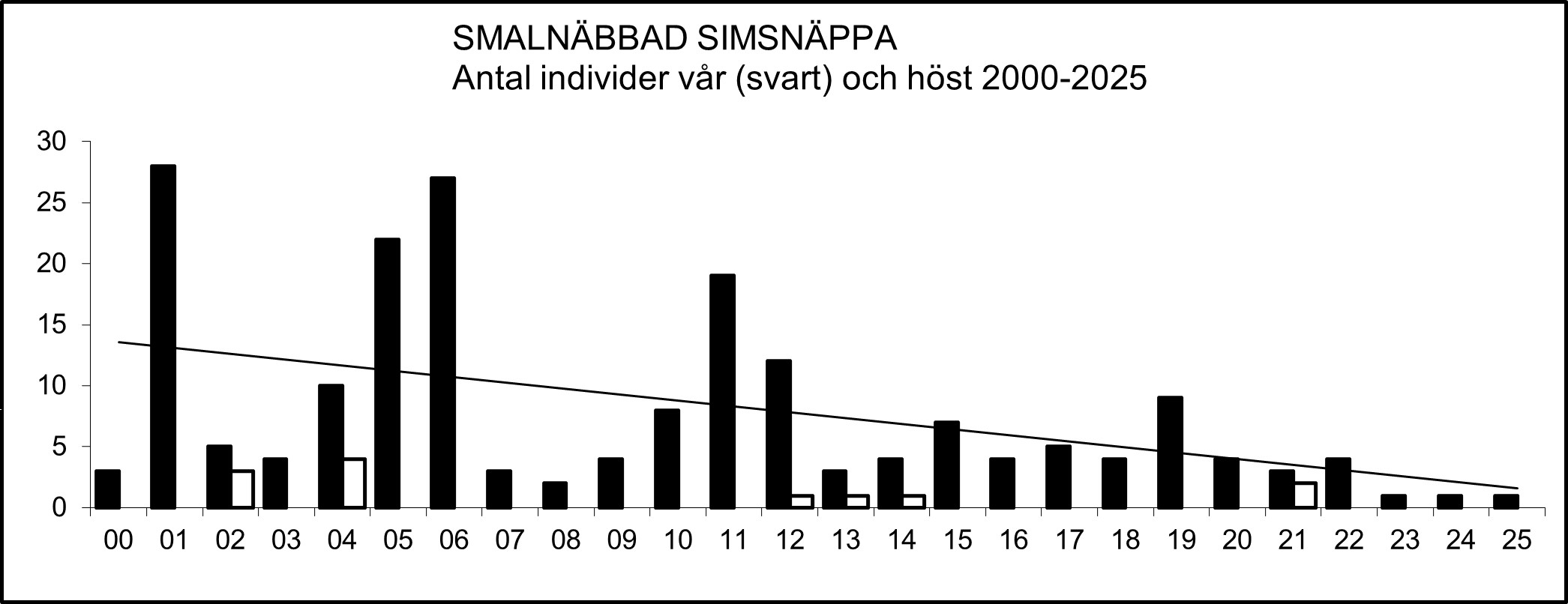 Arten är en sparsam men regelbunden genomflyttare, främst på försommaren. Vissa vårar kan den uppträda relativt talrikt som rastande medan den kan saknas helt andra vårar. En vikande tendens kan dock märkas efter millennieskiftet. Retursträcket i juli-september noteras mer oregelbundet. Oftast ses enstaka fåglar eller små sällskap men undantagsvis har större (minst 10 ex.) ansamlingar noterats under perioden 2000-2025: