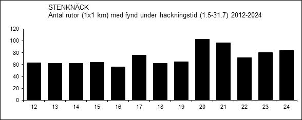 Under 1970-talets första hälft synes stenknäcken vara ordentligt etablerad som häckande: ”5 häckningar [1974] rapporterade från Mälarregionen. Observeras varje år under häckningstid och är sannolikt årsviss häckare. Förekommer utanför Mälarregionen endast sällsynt.” (Lars Lindell 1975h). Denna bild bekräftades också av projektet Svensk fågelatlas 1974-1984, vars resultat visas på karta nedan.