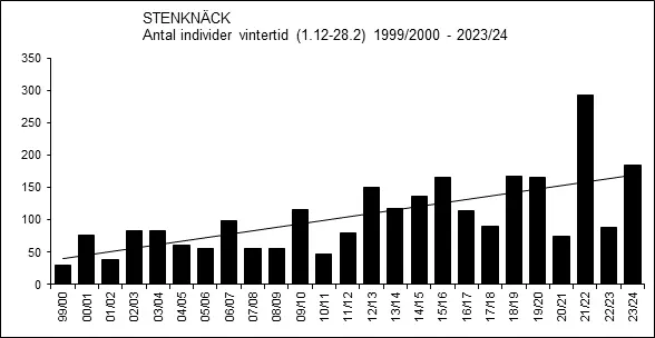 Antalet individer vintertid i Västmanland har ökat kraftigt sedan mitten av 1990-talet även om antalen varierar rätt mycket mellan olika vintrar. Vissa vintrar kan den vara särskilt talrik och vintern 2021/22 registrerades rekordmånga stenknäckar, 293 ex.