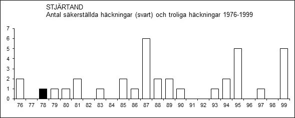 Före 1976 finns uppgifter om säkerställda häckningar i två fall: Djupen i Ramnäs 1958 (Bertil Eriksson 1972; Lars Lindell 1973e); Österhammarssjön i Fellingsbro 1975 (Jan-Erik Malmstigen, opubl.).