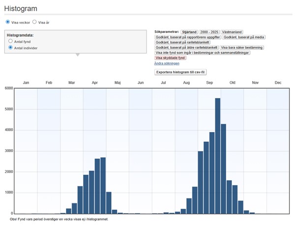 Arten uppträder annars som en sparsam till tämligen allmän genomflyttare vår och höst. Någon tendens till långsiktig förändring i sträckets numerär synes inte under perioden 2000-2025, varken vår eller höst.