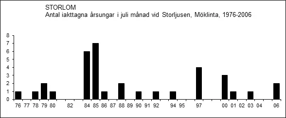 Mediandatum för första och sista fynd under perioden 1976-1999 är den 11 april respektive den 9 oktober.