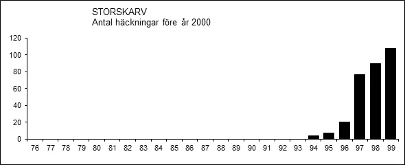 Fram till mitten av 1980-talet var storskarven en regelbunden men rätt sparsamt förekommande fågel under främst vår och höst. Från mitten av 1970-talet och fram till 1990-talets början gjordes i regel ett tiotal fynd per år, men så sent som år 1990 rapporterades endast tre (3) enstaka observationer under hela året i landskapet som helhet (FiV 22:94).
