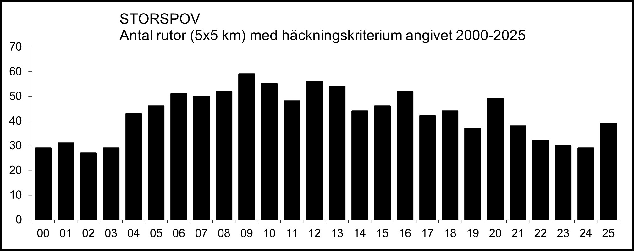 Sträcket av genomflyttande storspovar kulminerar i slutet av april och vid den tiden har de allra största ansamlingarna av rastande fåglar och sträcksummor noterats. Även på retursträcket med början i juni kan höga dagssummor nås. Större (minst 200 ex.) ansamlingar och sträcksummor 2000-2025: