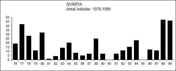 1976 1 ex. omhändertogs i Sala 14.3, och släpptes dagen därpå vid Fläcksjön i Fläckebo, där den sedan sågs regelbundet till och med 25.7 (MVOF 8:72; Bo Eriksson 1977).