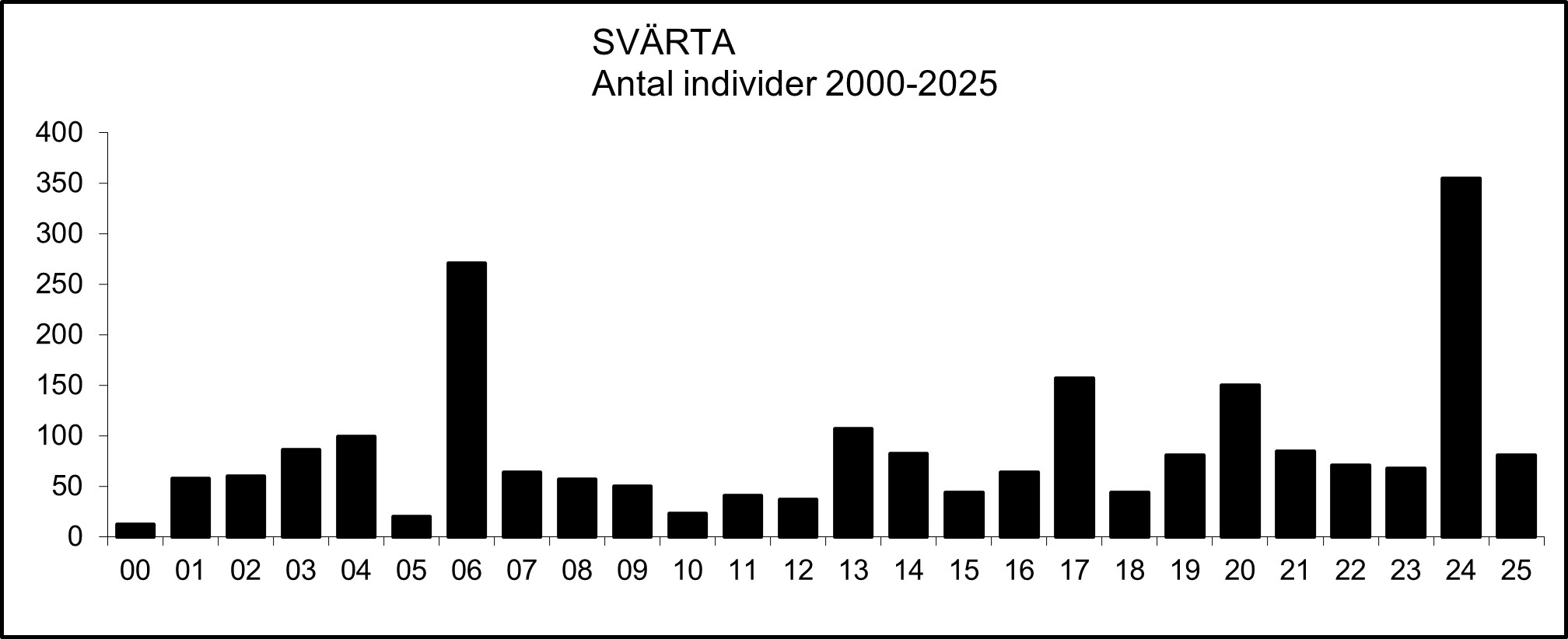 De största (minst 20 ex.) iakttagna flockarna eller ansamlingarna under perioden 2000-2025 är följande: