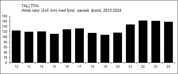 Enligt Anonym (1970d) var talltitan ”oerhört allmän förra vintern [1968/69] men uppträder inte alls i samma utsträckning nu [1969/70].”.