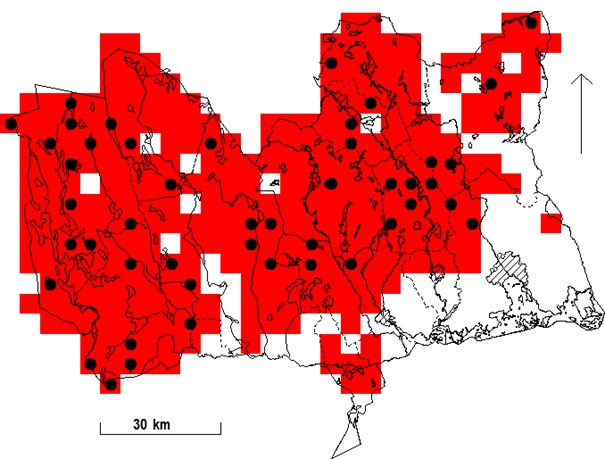 | 1949 | Västmanland | ”övervägande ökning” (Kai Curry-Lindahl 1949). |