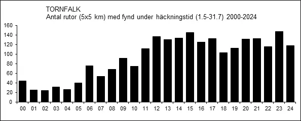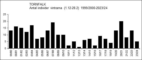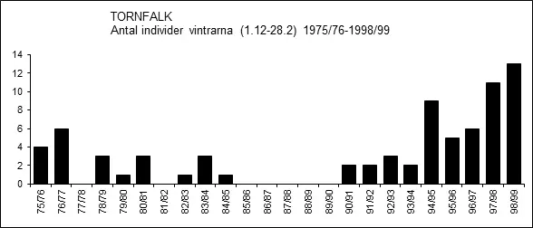 Några tornfalkar övervintrar årligen sedan mitten av 1990-talet.