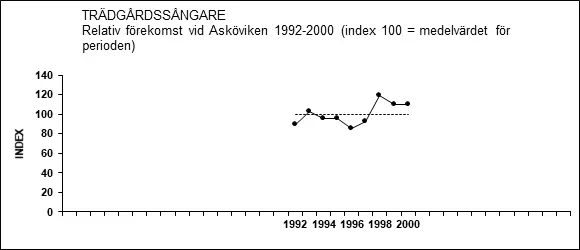Punkttaxeringar vid Asköviken 1992-2000 indikerade en tämligen stabil förekomst över tid (Thomas Pettersson, opubl.).