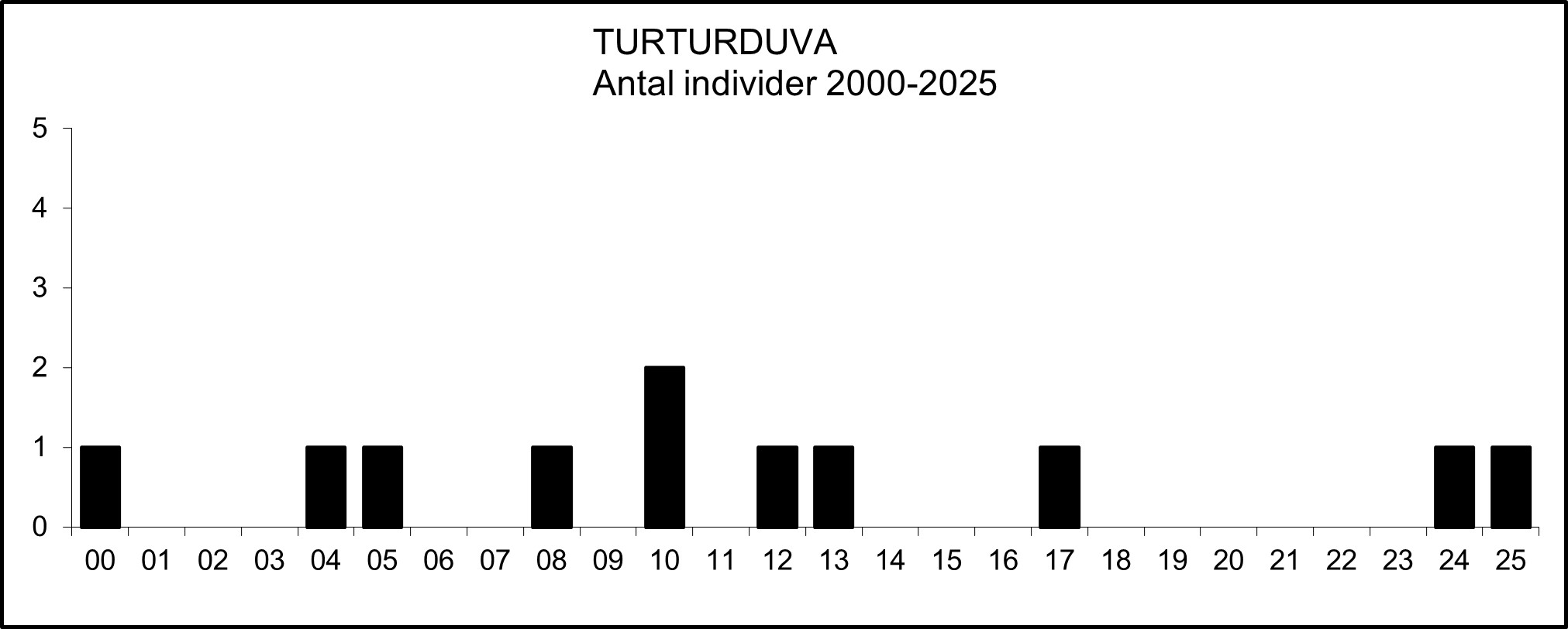 Det är ovanligt att fåglar ses mer än en dag, något som har hänt vid tre tillfällen under perioden 2000-2025: