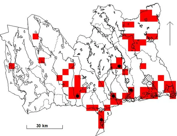 Uppgifter från atlasinventeringen 1974-1984, se karta nedan, tyder på att vattenrallen expanderade till flera lokaler i västra Västmanland under den perioden.