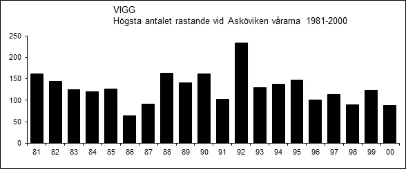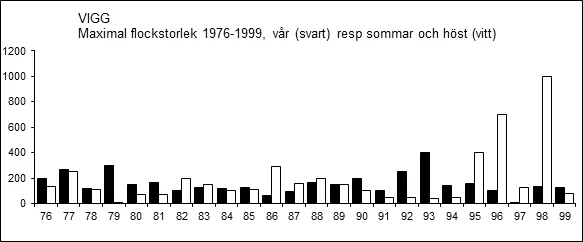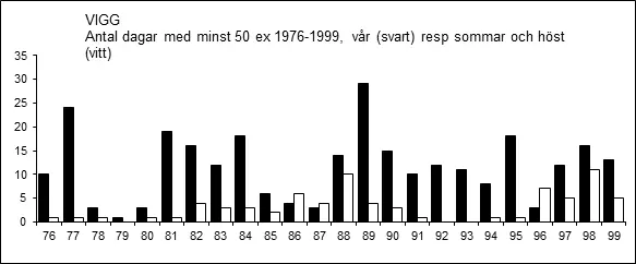 En hög (minst 50 ex.) dagssumma av sträckande viggar före år 2000: