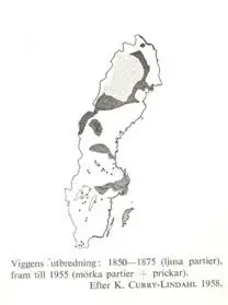 Kai Curry-Lindahl (1959-63, s. 225) presenterade en utbredningskarta som visar att viggens förekomst i Västmanland fram till 1955 inskränkte sig till Mälaren och Hjälmaren. Intressant nog var viggens svenska utbredning under perioden 1850-1875 inskränkt till inre Norrland, vilket antyder att viggens invandring till Västmanland ägde rum senare än brunandens, kanske först på 1920- eller 1930-talet.