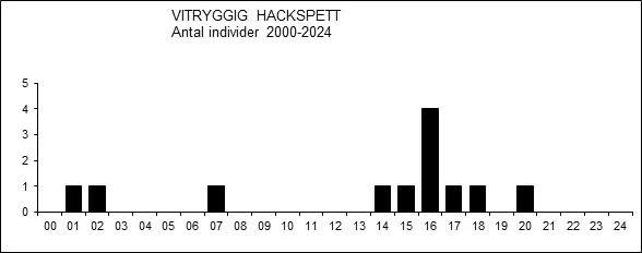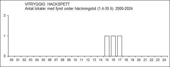 Den vitryggiga hackspetten uppträder numera ytterst sällsynt i Västmanland. Under perioden 2000-2024 rapporterades inte en enda säkerställd häckning, dock sågs den under häckningstid på två (2) lokaler åren 2015-2017. Rapporterade fynd under perioden 2000-2024 förtecknas nedan. Notera att så många som fyra olika individer rapporterades 2016, vilket kan ha ett samband med ett inflöde från öster till Sverige hösten 2015 (FiV 48[2-3]:52). Notera också att en och samma individ uppehöll sig i Nora under åren 2014-2018.
